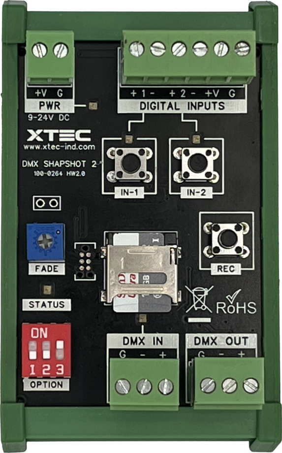The XTEC DMX Snapshot is a stand-alone DMX-512 replay unit, intended for industrial applications that require simple control of lighting or special effects equipment.