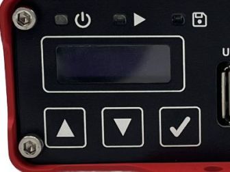 0.91" OLED display and navigation buttons, for local configuration and testing.
